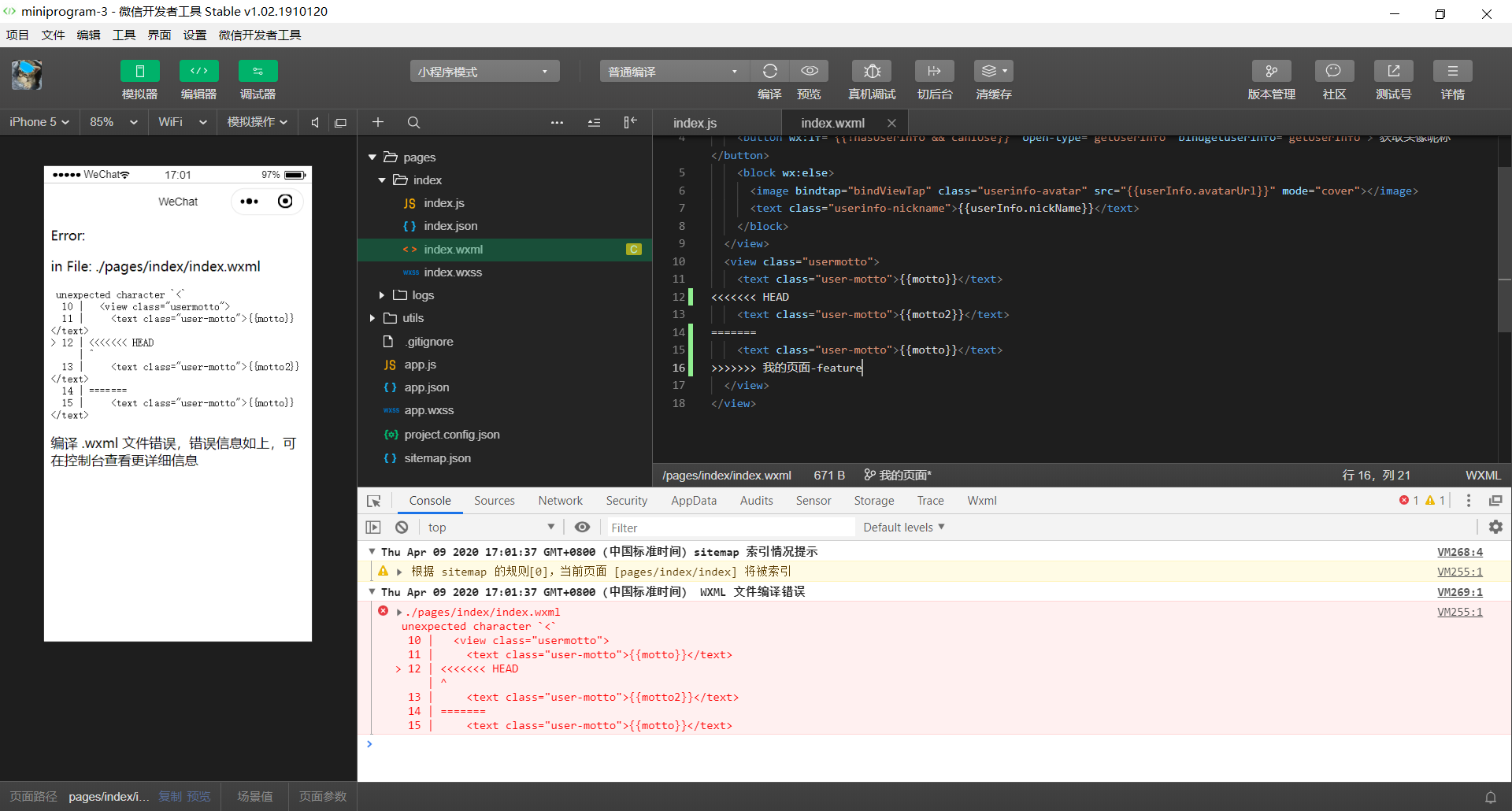 冲突应该是没办法避免的,小程序开发工具没有vscode那么智能,需要手动解决冲突