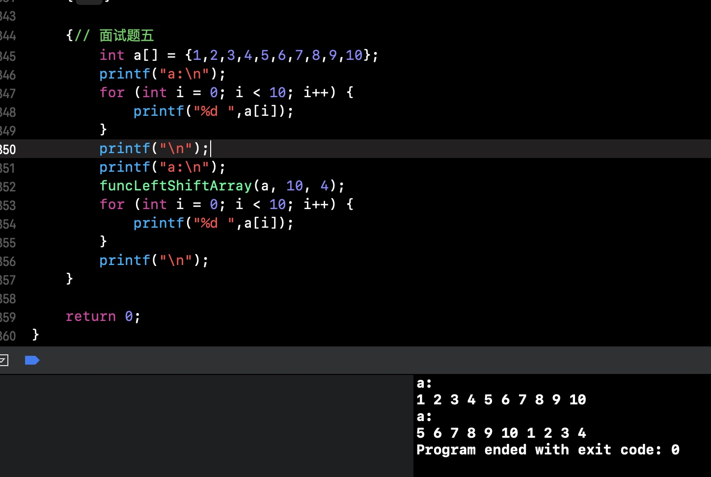 funcReverseArray(p, n-left, n-1); // 逆序最后left个元素