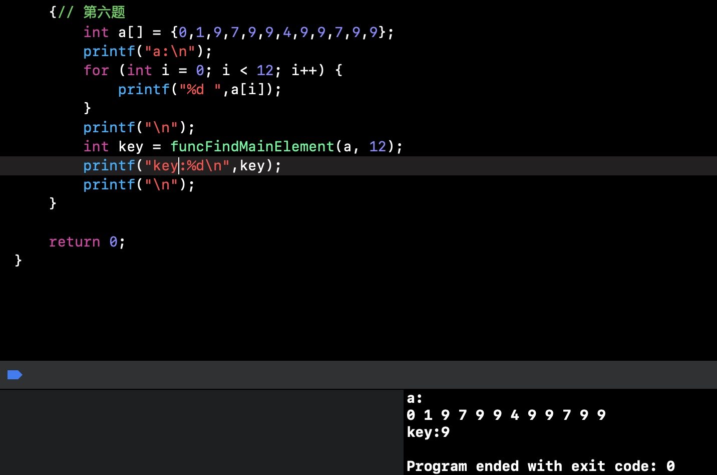 int key = a[0]; // 把当前第一个元素当作候选主元素