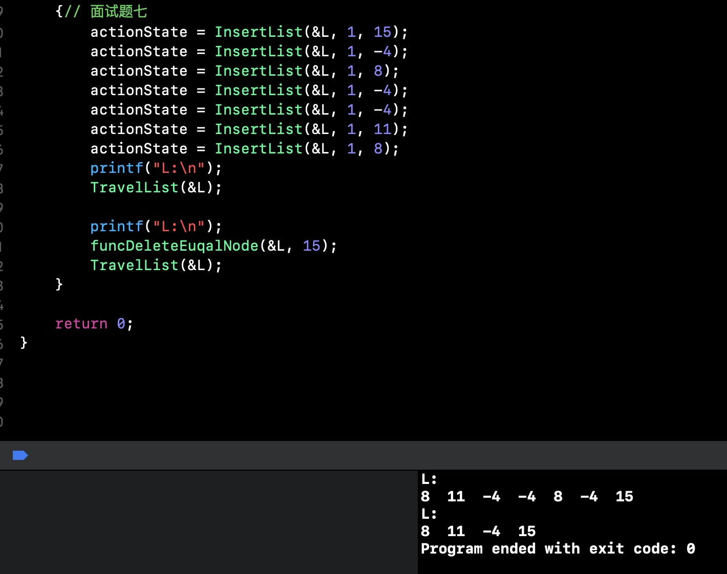 - 7.3 遍历链表,判断当前链表数据data的绝对值作为下标,在数组中的值情况,如果是1代表已经出现过,则删除当前节点,如果值是0,代表当前节点未出现过,将当前节点数据为下标的对应数组的值置为1,代表当前节点已经出现过