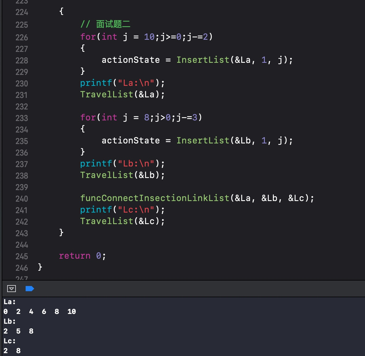 void funcConnectInsectionLinkList(LinkList *La, LinkList *Lb, LinkList *Lc){