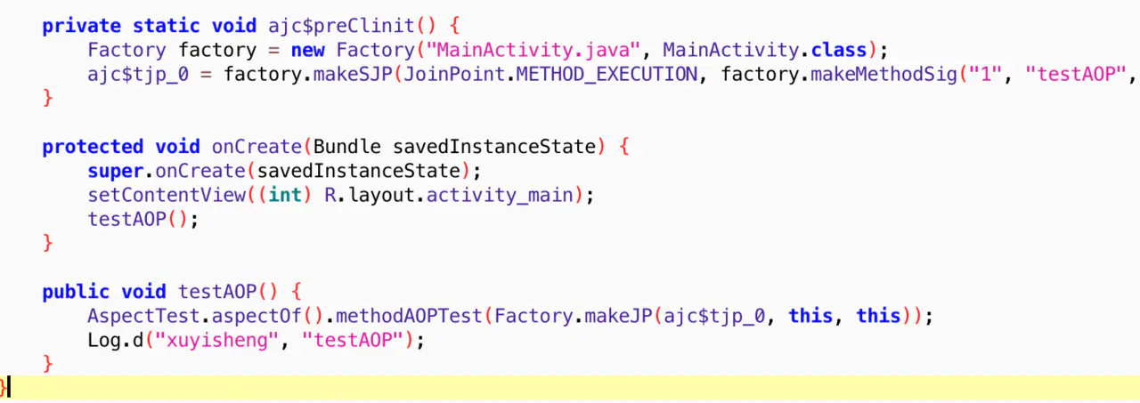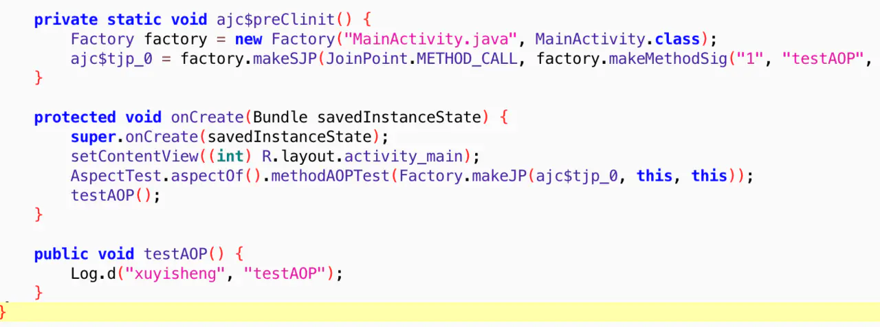 在我们andorid开发中都使用过注解功能,第三方库有注解的有ButterKnif、dagger2、EventBus、Retrofit,其实这些库部分核心功能也是基于AOP实现的。只不过他们还用到了其他插件,比如APT,APT在程序编译期,扫描代码中的注解信息,并为我们生成java代码,实现我们的功能,无需我们手动去处理。