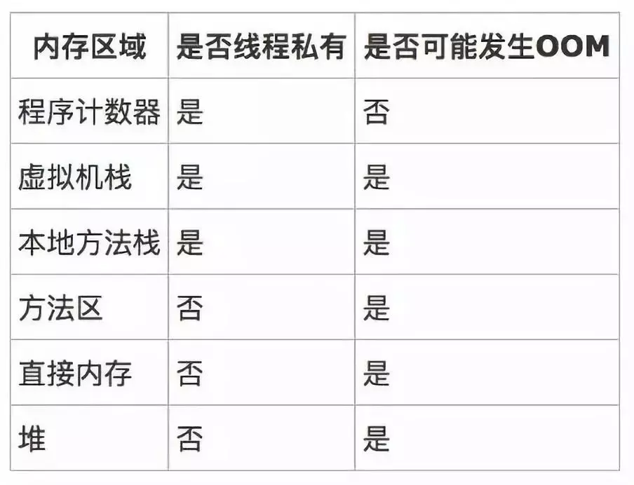 从上面分析的Java数据区来看,除了程序计数器不会发生OOM外,哪些区域会发生OOM的情况呢?
