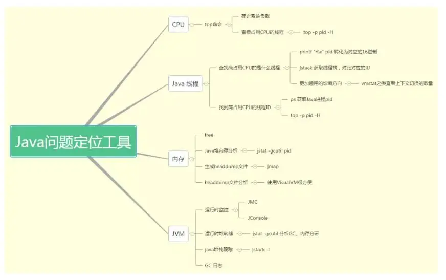 其他的内存、CPU等性能监控工具的使用,以一张脑图来展示: