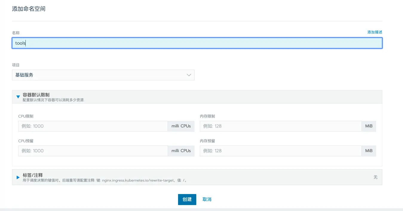 - 创建命名空间