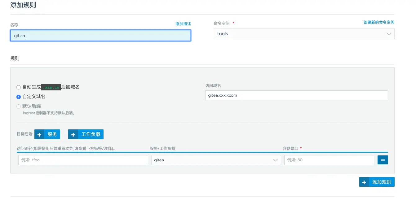 - 配置gitea负载,域名