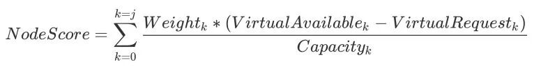 为了避免在调度过程中,造成不同资源之间配比产生碎片,即避免出现两个Node分别剩余32C1G和2C64G的情况,原生调度器提供了balanced_allocation算法。该算法通过计算资源的request和capacity的比值,并力求资源间的配比均衡来避免出现个别资源的分配碎片。