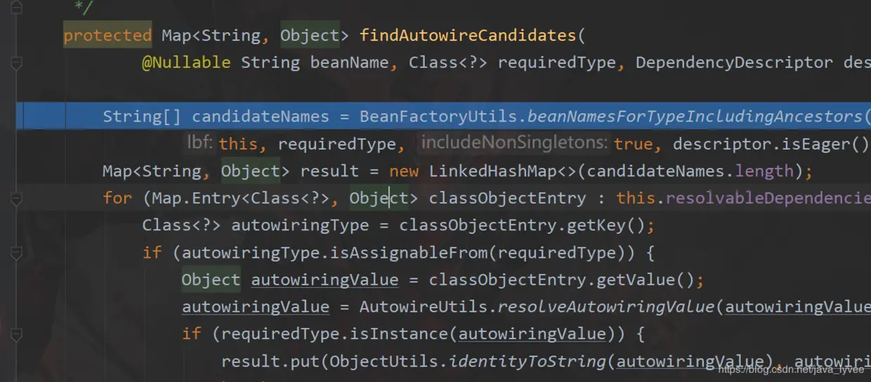 4、调用findAutowireCandidates获取ApplicationContext对象
