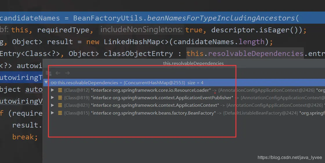 然后遍历了一个map——resolvableDependencies(关于这个map,下文有解释)