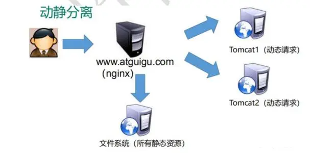 为了加快网站的解析速度,可以将 动态资源 和 静态资源 分别放置不同服务器, 来加快解析速度。降低原来单个服务器压力。