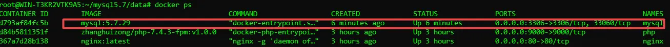 执行:docker ps 查看服务是否启动成功