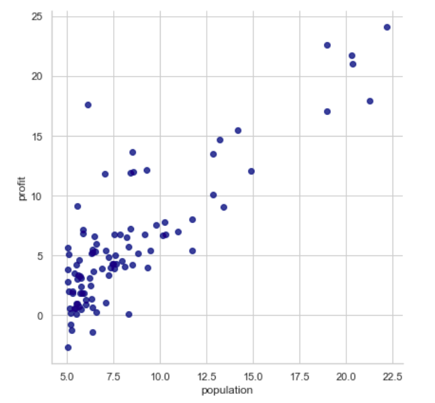 理论介绍完了,下面进入实战部分,登龙手把手用 Python 带你实现一个梯度下降法,并用这个的算法来拟合下面的数据点(人口 - 利润):
