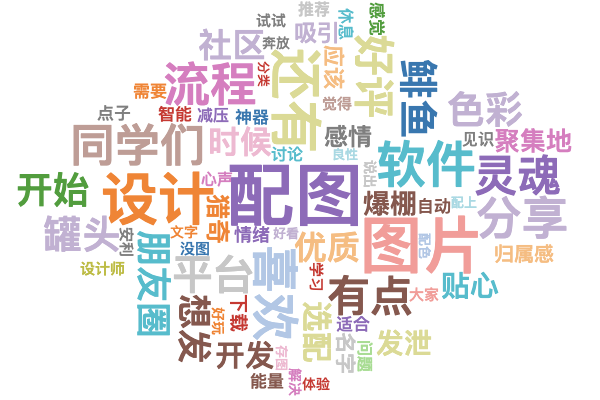 关键词:有趣、社区友善、智能推荐、配图分类、自定义图片、优质图库、操作简洁、设计感强