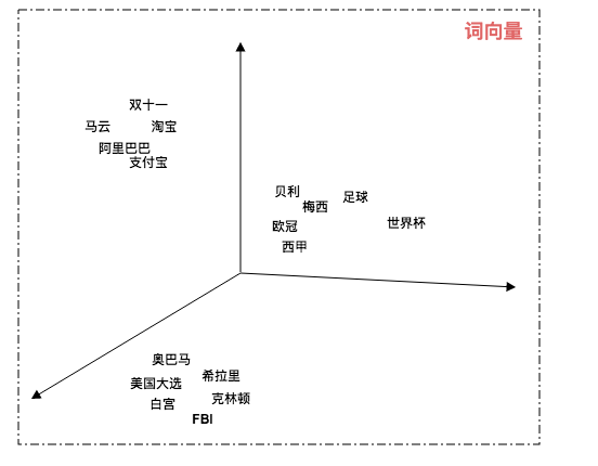 通过Word2Vec技术我们可以在低纬空间上表示文本。我们可以通过计算词向量空间中的距离来表示语义的相似度。