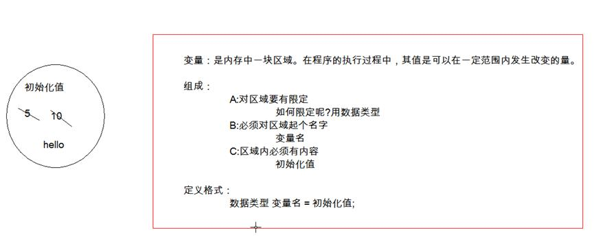 数据类型 变量名 = 初始化值;- 注意:格式是固定的,记住格式,以不变应万变