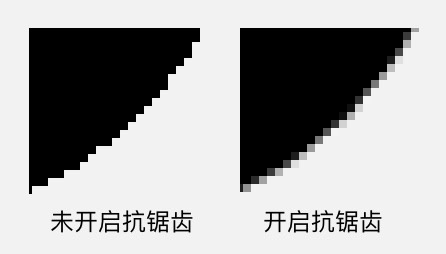 表示是否打开抗锯齿。抗锯齿会根据特定的算法(插入特定像素,使不规则的图形边缘不会看起来有那么强的毛刺感),使绘制的不规则图形(如圆形、文字等)边缘看起来更平滑。在绘制棱角分明的图像(如矩形、位图等)时,是不需要打开抗锯齿的。