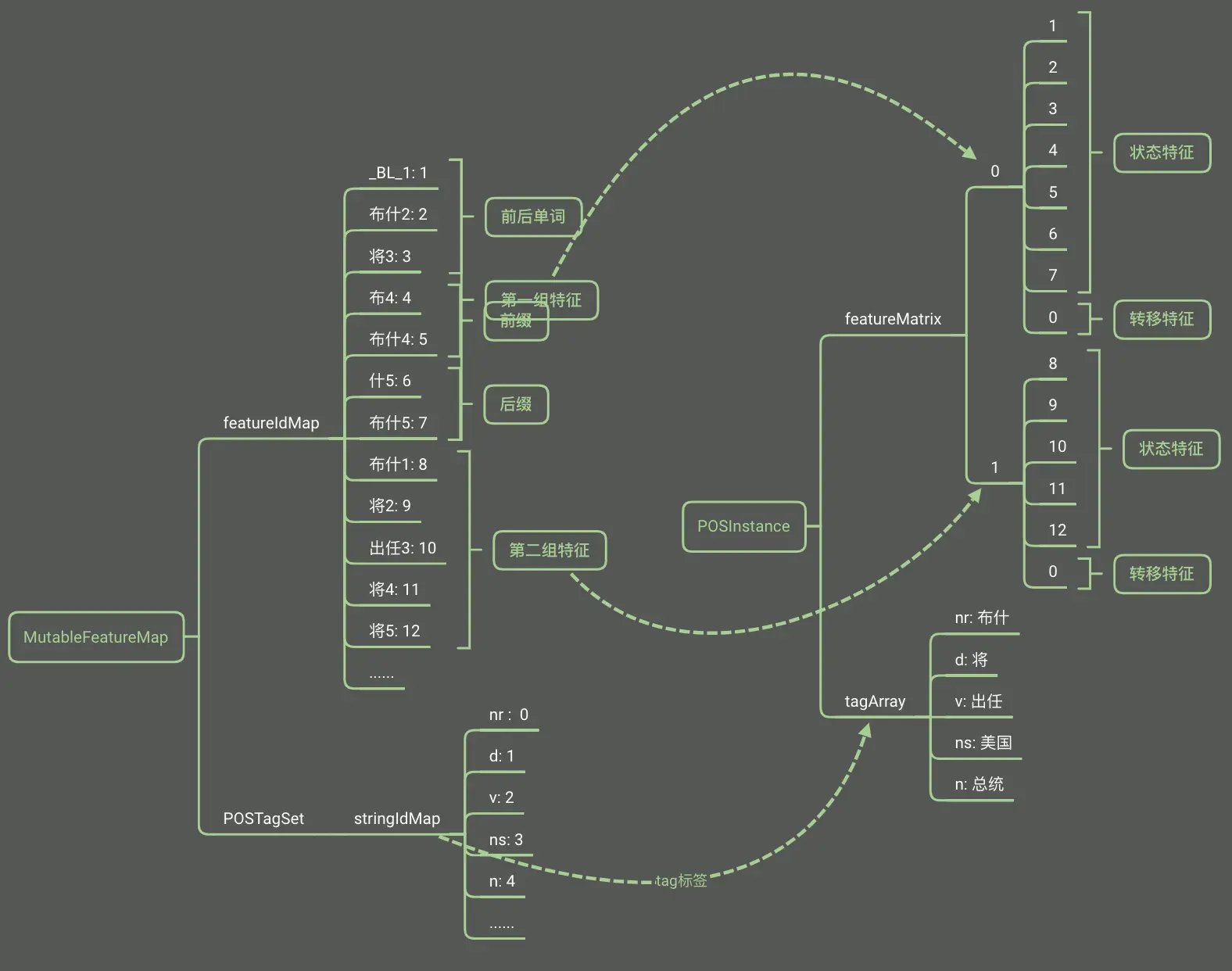 | 转移特征 | 状态特征 | 示例 |