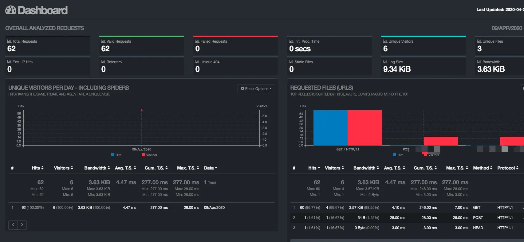 goaccess提供了终端显示、HTML、csv等访问数据的方式。 这里依次讲解使用细则。(安装步骤省略,请自行百度)