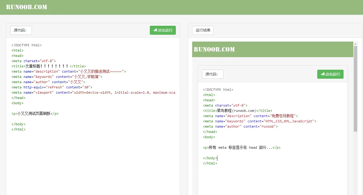 meta标签描述了一些基本的元数据。元数据不显示在页面上,但会被浏览器解析。