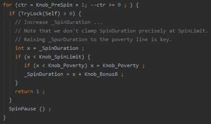 原理:当多个线程竞争同步代码块时,线程可能对共享资源的操作时间是比较短的,也就是执行同步代码块花费的时间较短,如果我们让其他线程去阻塞等待,开销太大。