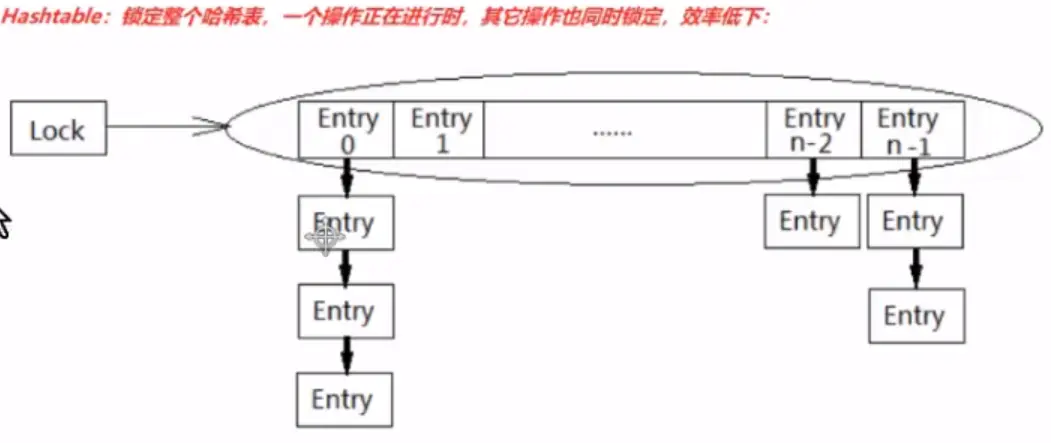 Hashtable 的 put、get、remove都是在方法上加synchronized,用的都是同一把锁。