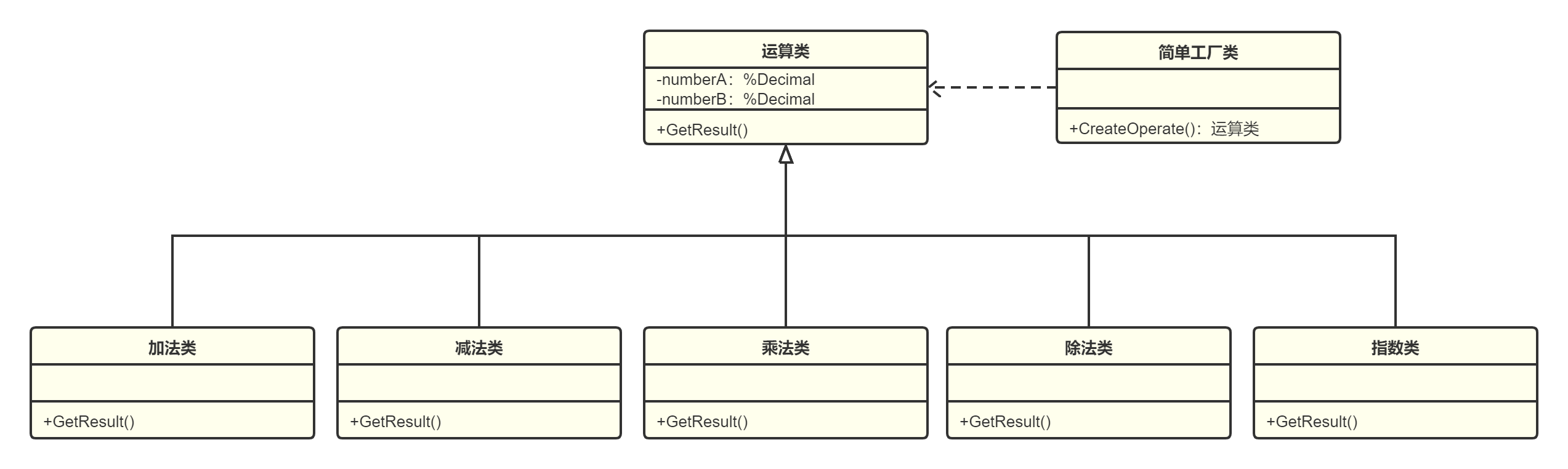 - Operation类GetResult()为抽象方法,子类需要重新实现。