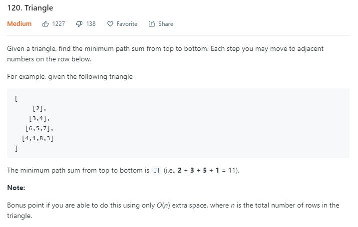 public int minimumTotal(List<List<Integer>> triangle) {
