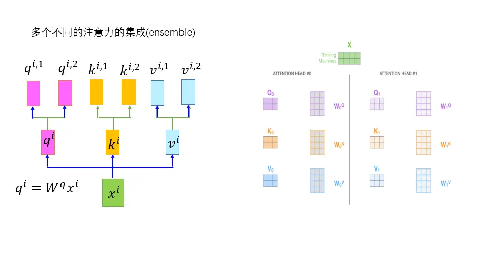 (2)使用多头注意力机制我们就能得到多个查询/键/值的权重向量矩阵。