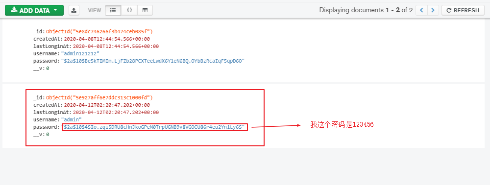 我这边没有写前台,只能手动写账户和密码到 数据库验证(index.js)
