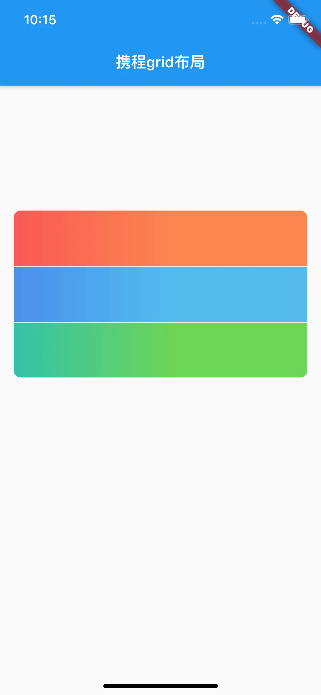 return Column( children: <Widget>[ _hotelRow(), _flightRow(), _travelRow(), ], );F5运行到模拟器,查看 -