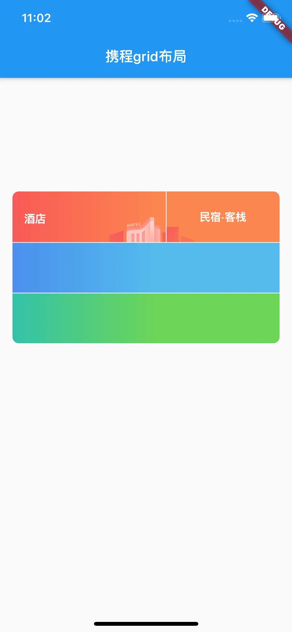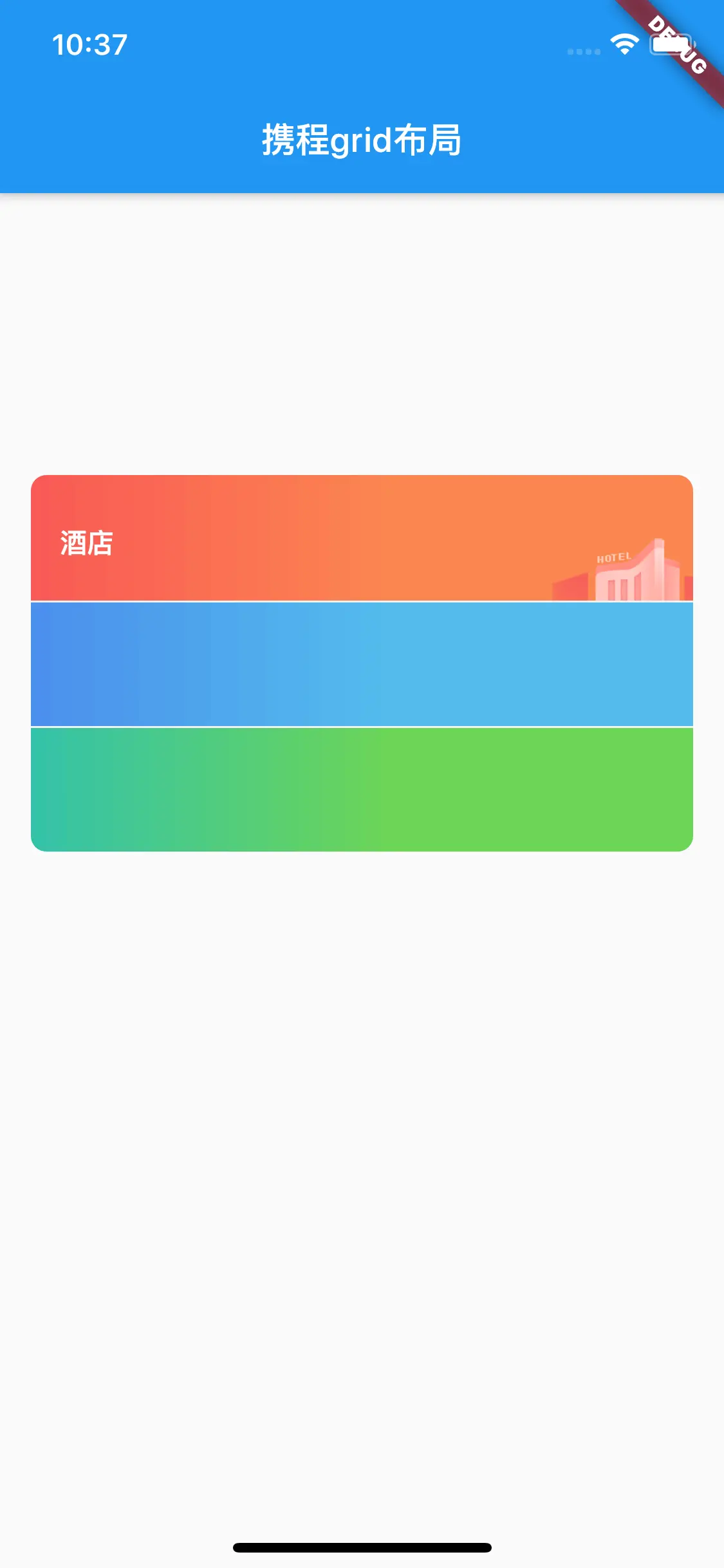 _hotelRow()方法的// todo: add hotel row items的下方添加_secondBGImageStack(),,cmd+s保存后热更新界面如下: -