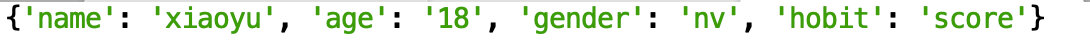 d = dict(name = 'xiaoyu',age = '18',gender = 'nv')