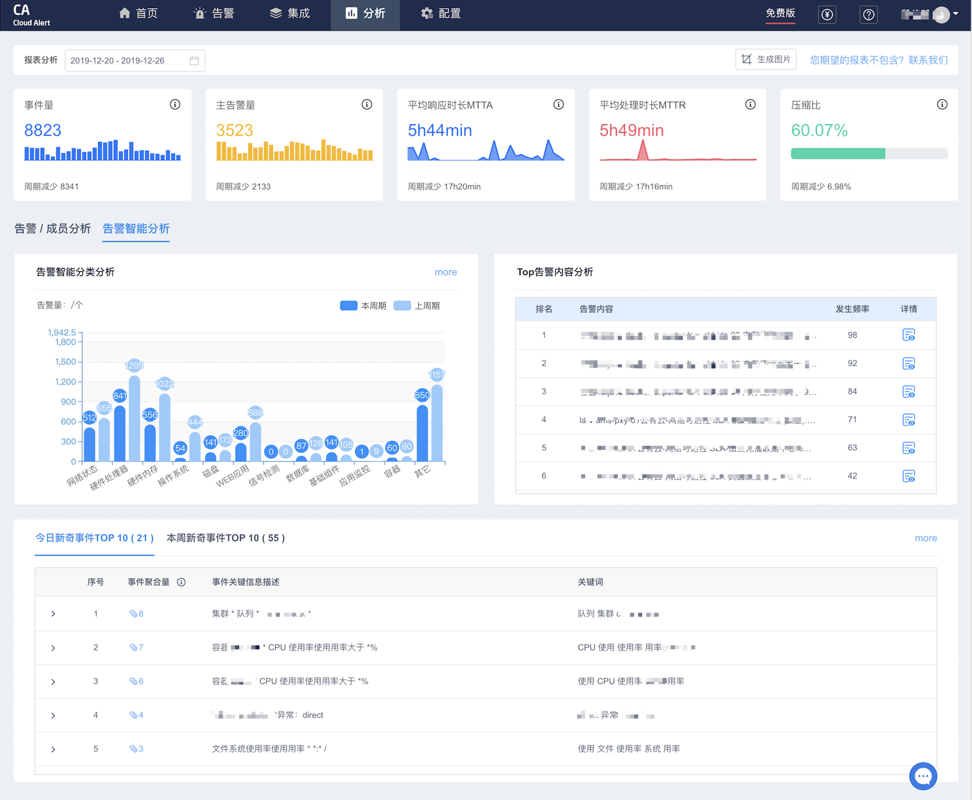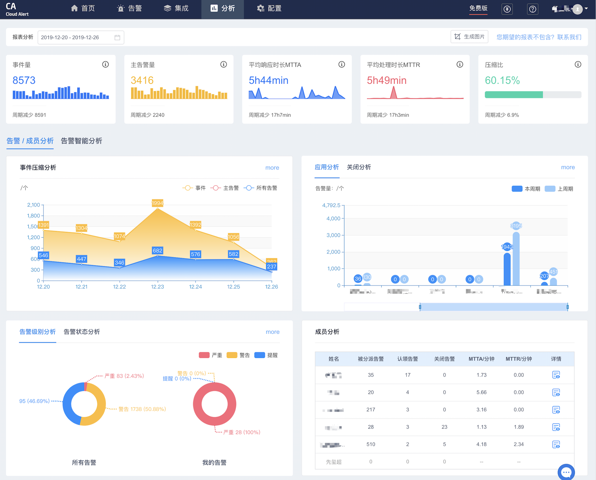 CA提供多维度报表帮助您快速分析告警、成员工作效率,概览系统运行状况。支持自定义时间段,回溯分析历史系统状况。