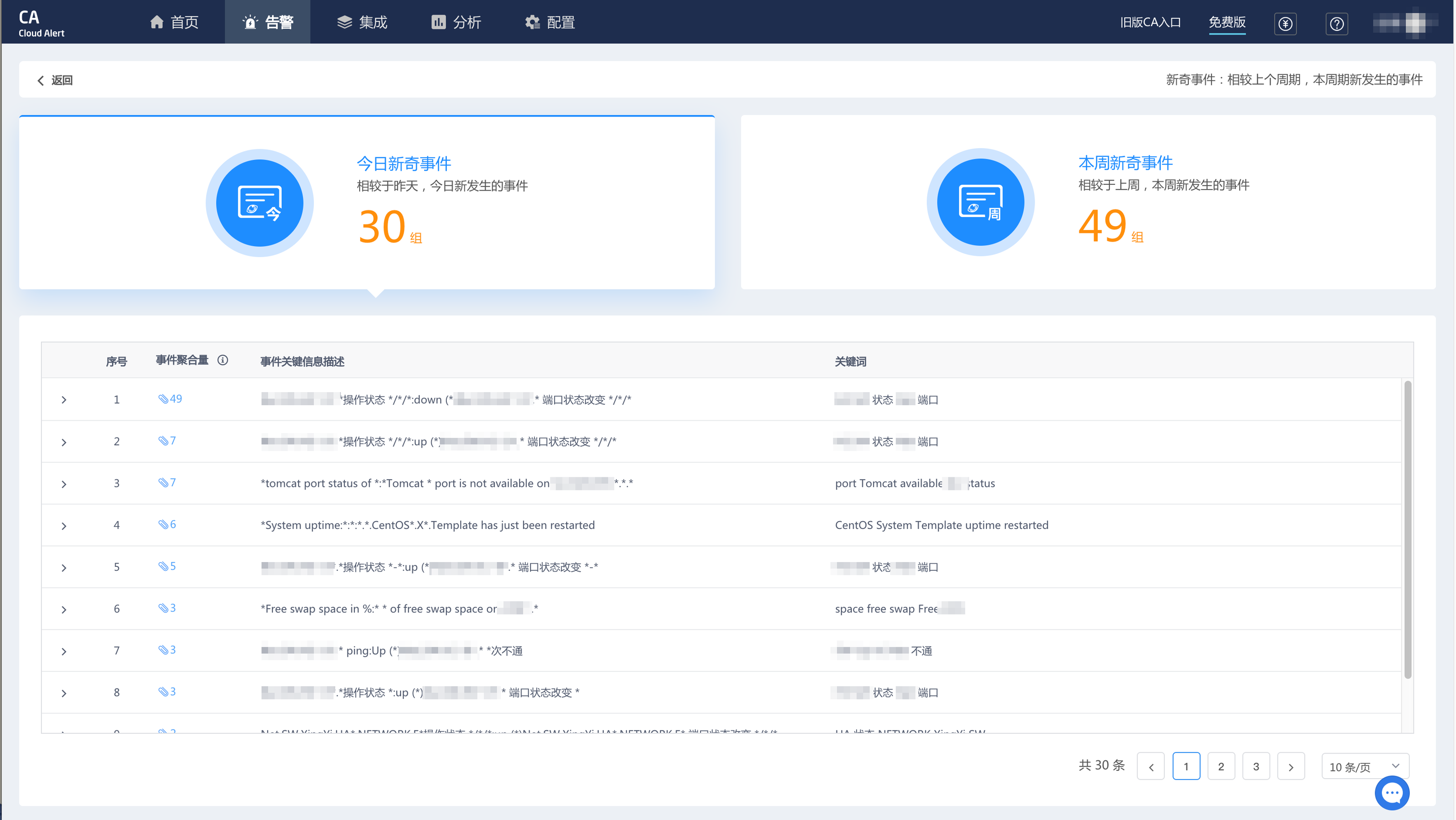 为了进一步帮助用户识别和定位可能的重要告警问题,CA引入了新奇事件。环比上周期,本周期内新发生的事件,即为新奇事件。