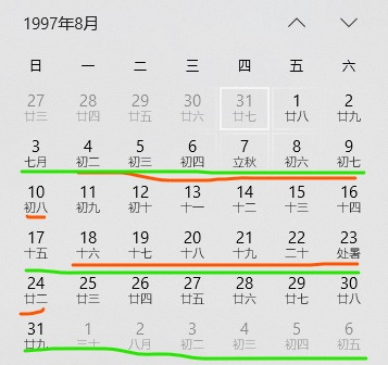 (5) Yearday,nlyearday:在该年的基础上加上yearday的值,nlyearday表示该年是闰年时候的参数。