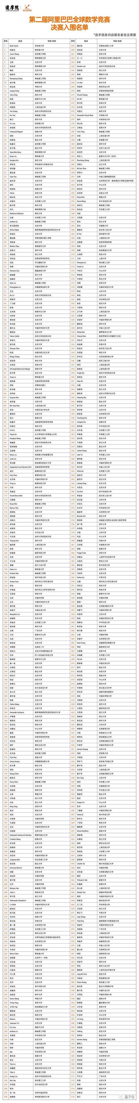 这不,第二届阿里巴巴全球数学竞赛决赛名单公布了。