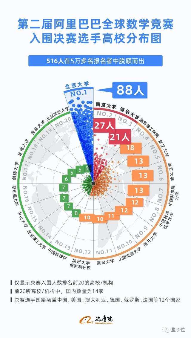 在阿里官方公布的决赛名单中,来自北京大学的参赛选手遥遥领先,甚至比第二名南京大学和第三名清华,多出3倍有余。