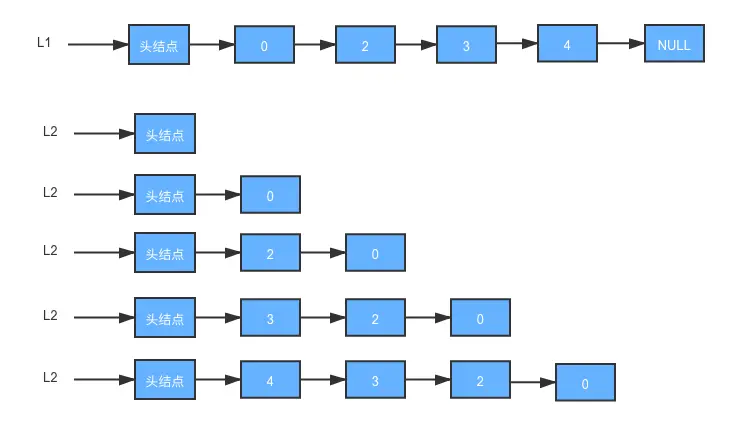(4)当一个表达到表尾结点为空时,非空表的剩余元素直接链接在Lc表最后.