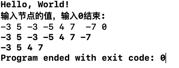 链表A = {21,-15,15,-7,15}, 删除后的链表A={21,-15,-7};