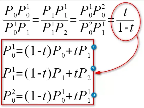 给定点,其贝塞尔曲线为: