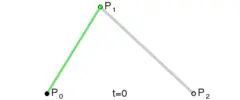 给定点 ,其贝塞尔曲线即是两点间的线段,等同于线性插值: