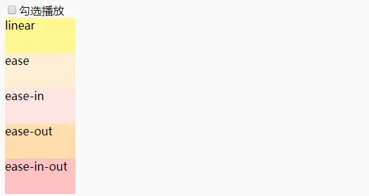 | ease | 缓慢开始,变快,减速结束 | (0.25,0.1,0.25,1) |