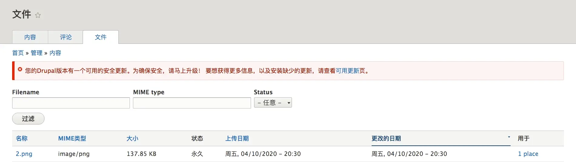 再来到“内容”页面,点击“文件”选项卡,不再出现错误提示,正常显示文件的列表