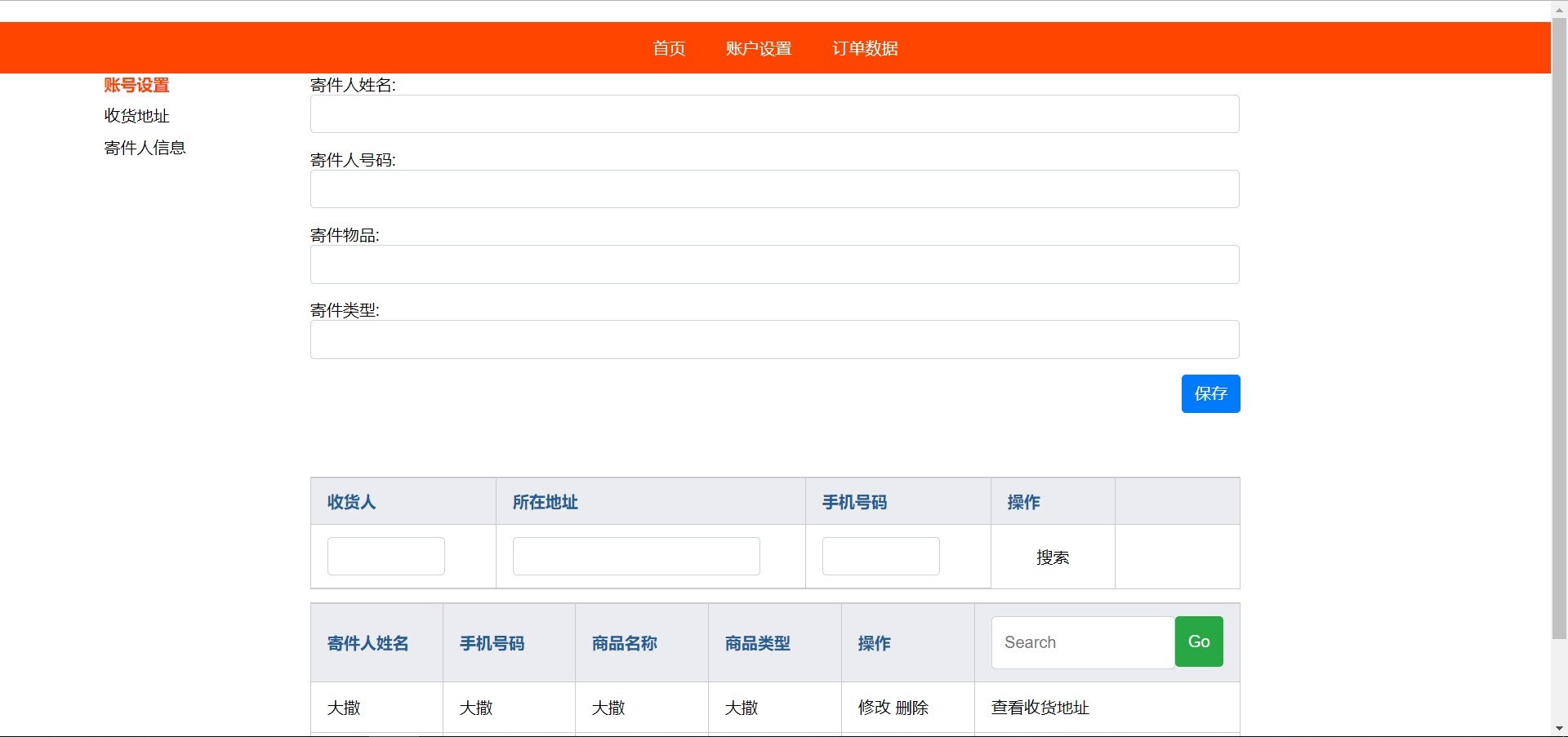 界面是仿照淘宝的收货界面,界面的切换是通过v-show来控制不同界面的展示,表格内数据通过v-for渲染数组内容,在写页面时遇到的问题主要是页面的布局结构 复习
