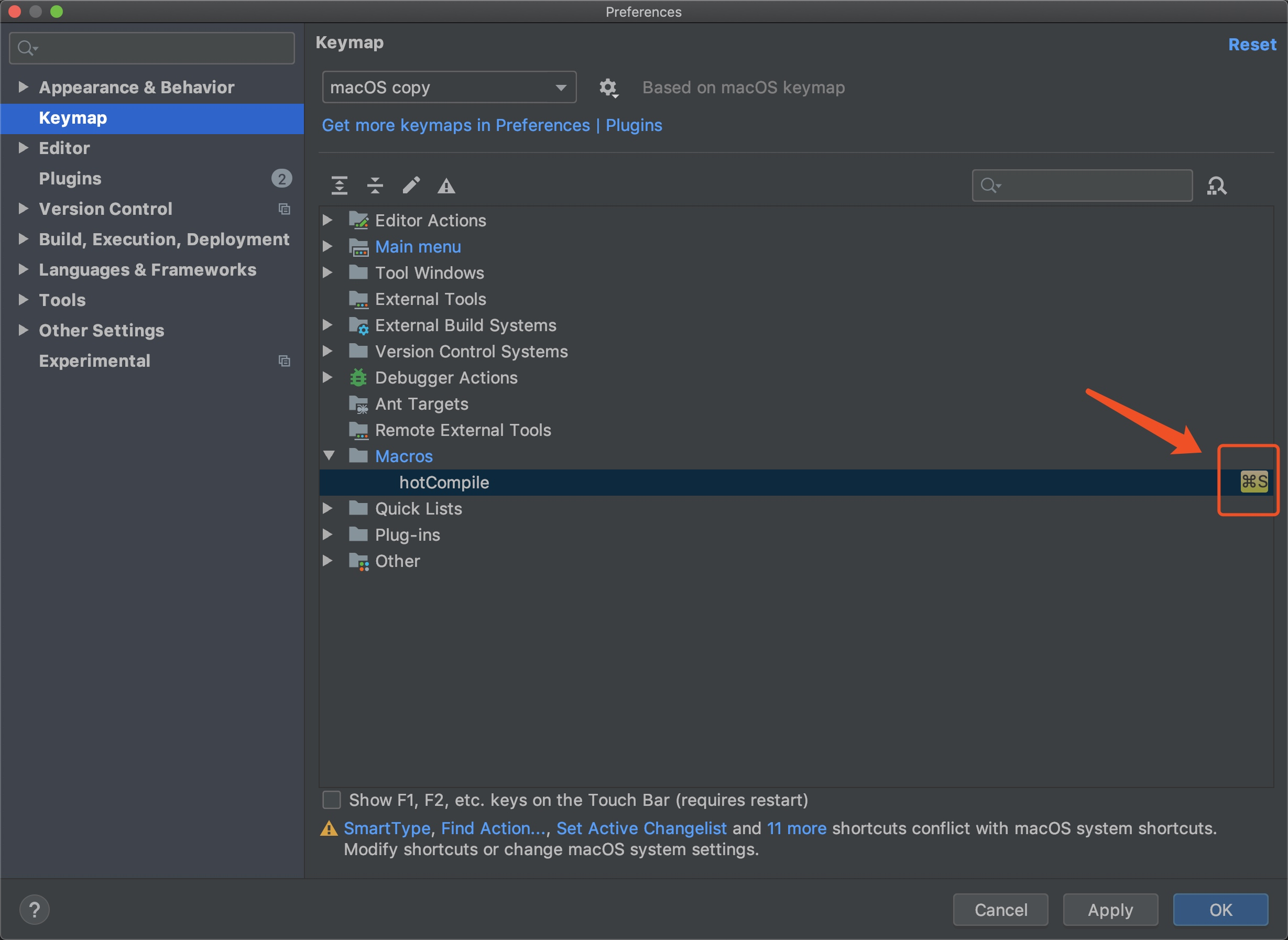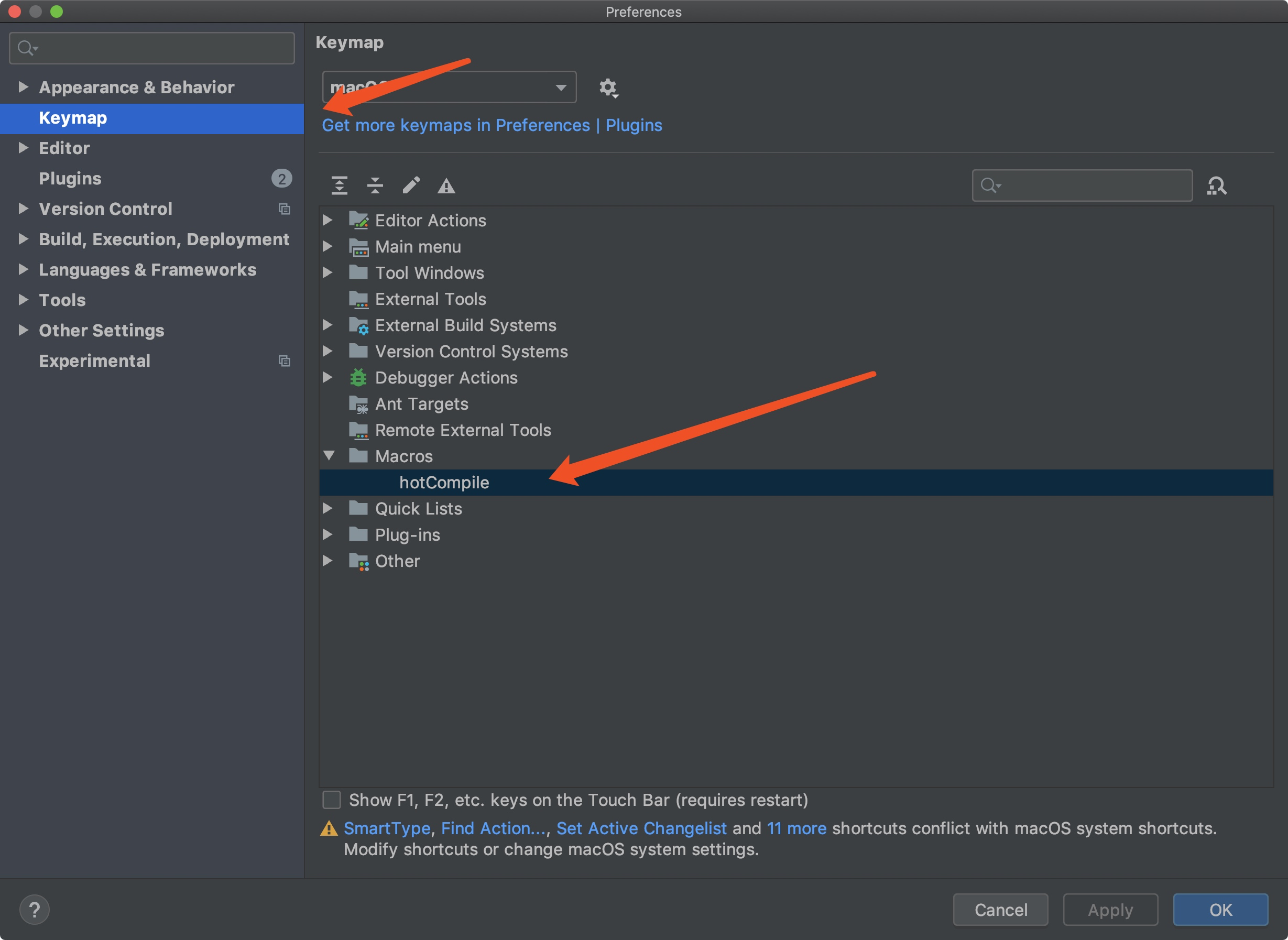 3、在idea设置中找到keymap下的macros,如下图