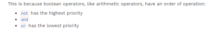 x为真,则输出False x为假,则输出True 当not和and及or在一起运算时,优先级为是not>and>or: