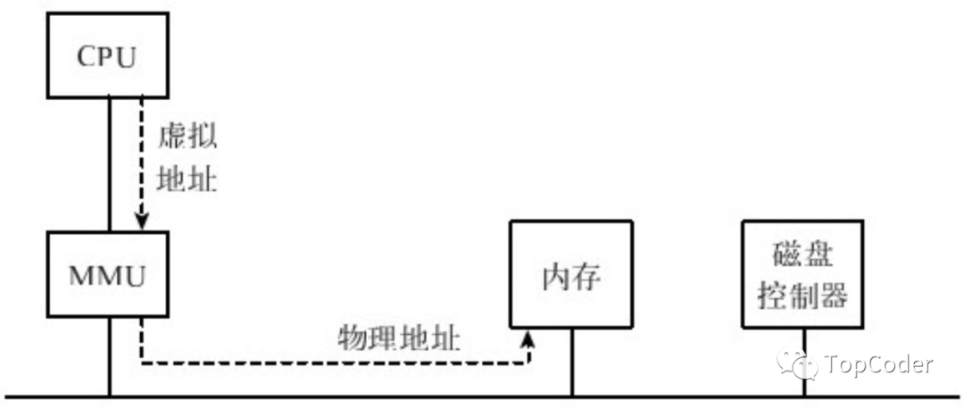 程序中看到的内存地址是虚拟内存地址,程序读写内存时会被映射到实际的物理内存中,这个映射称为翻译,这个翻译工作是由MMU(内存管理单元)来完成,MMU接收CPU发出的虚拟地址,将其翻译为物理地址后发送给内存,内存按照该物理地址进行相应访问后读出或写入相关数据。