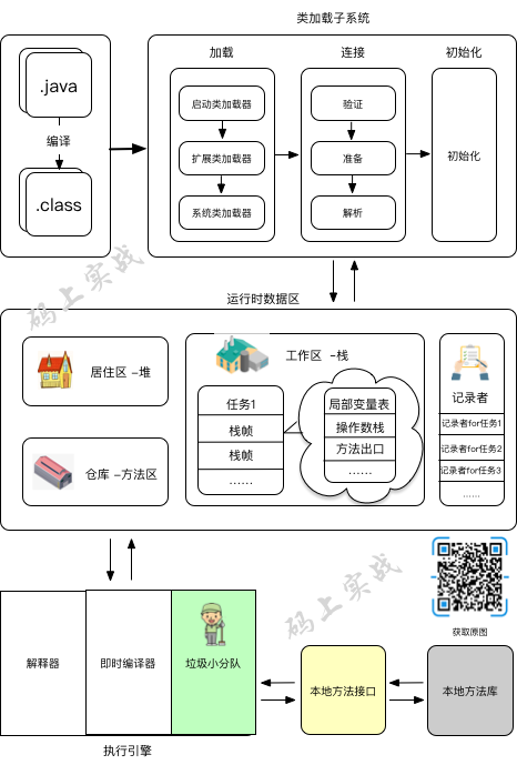 先来看看我们最主要的日常工作区(运行时数据区),为了让我们工作起来更有效率,我们将世界空间划分为这几个板块。