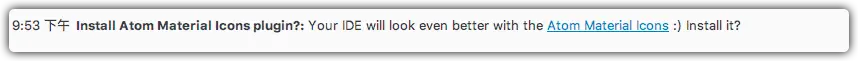 - 此时我们发现控制台有个提示:让我们安装Material Theme的图标,新版本的插件中默认没有携带图标,我们点击链接来安装它。