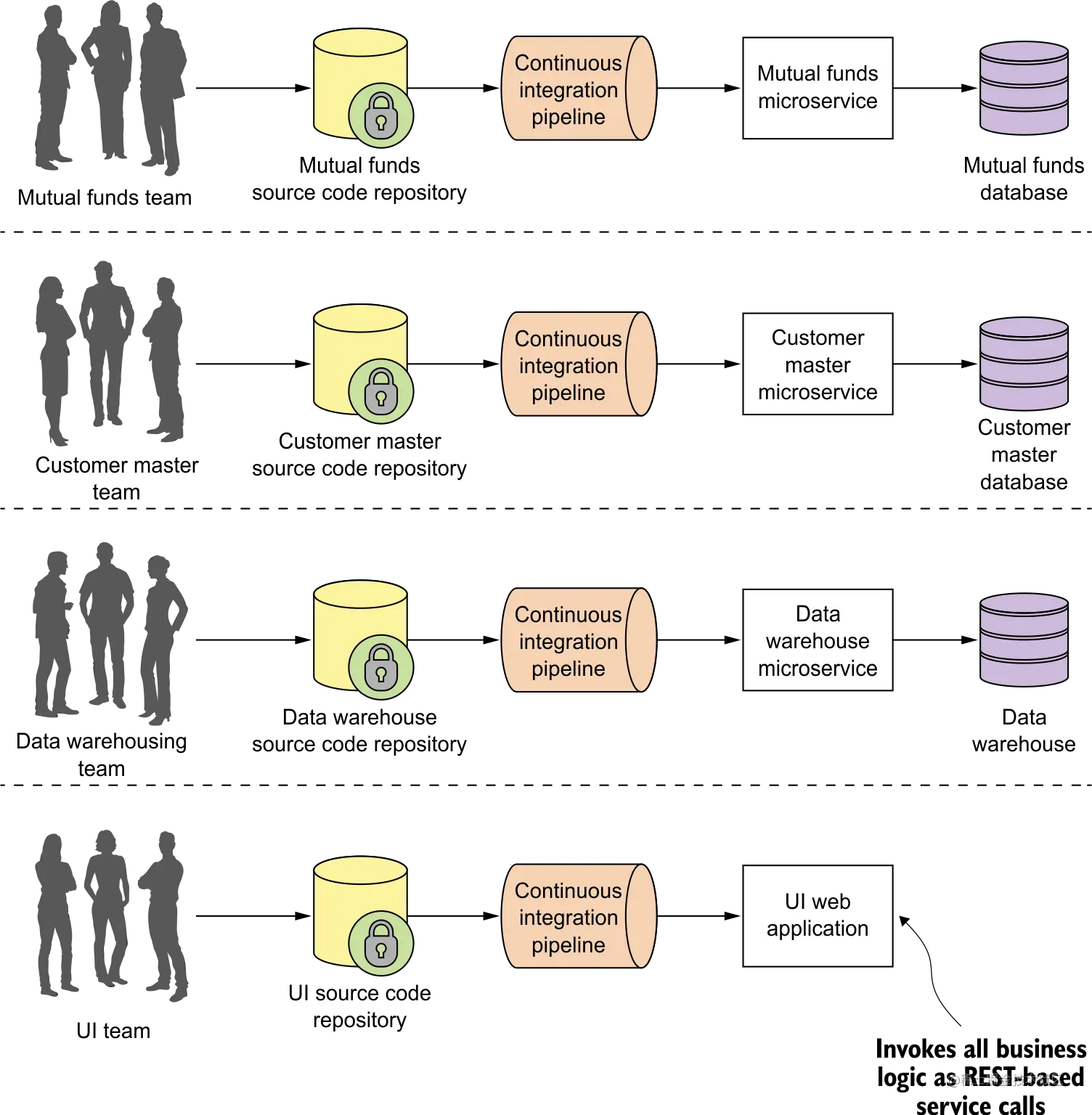 - 每个微服务可以独立开发、独立测试、独立部署